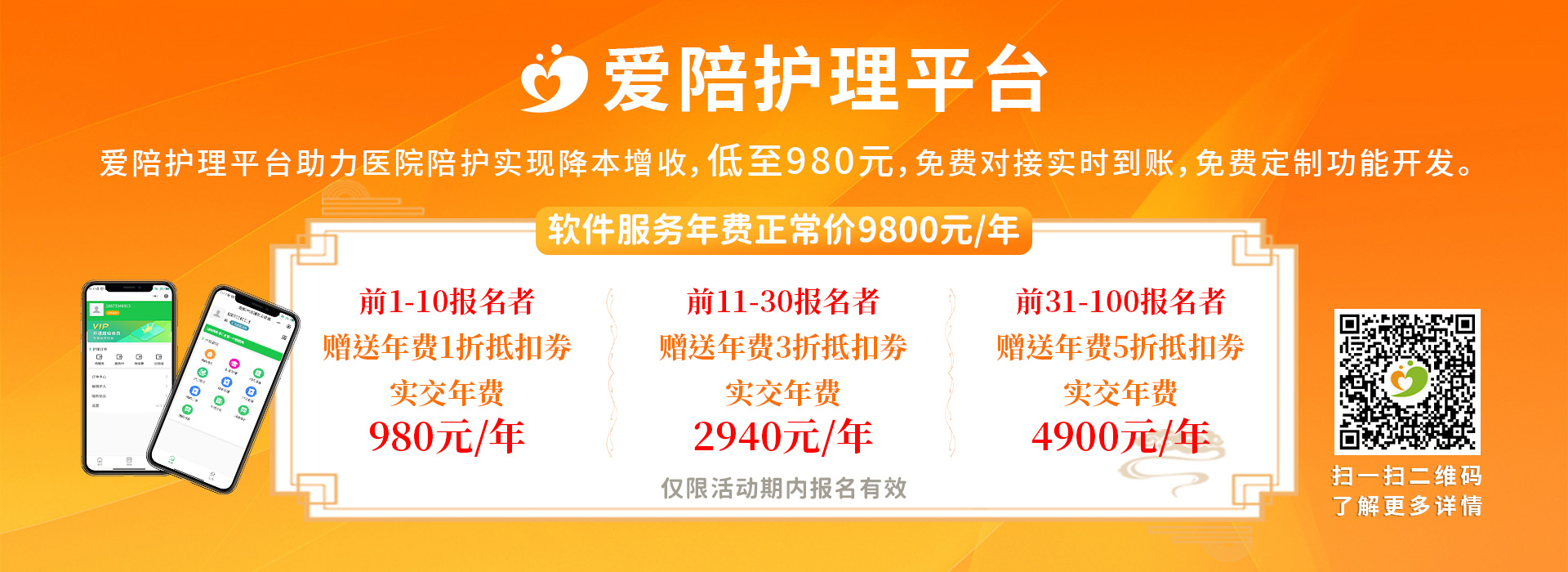 愛陪醫(yī)院護理管理平臺震撼推出年度特惠盛宴!僅需980元,全年尊享服務,超值體驗,限時搶購,機會難得,不容錯過!