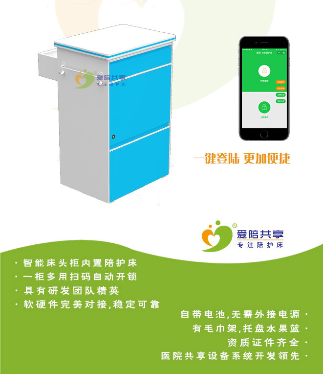共享陪護(hù)床適用很多大醫(yī)院,可以選擇直接購(gòu)置新型的設(shè)備為患者和家屬提供便利,也可以合作供應(yīng)商免費(fèi)進(jìn)行投放,在使用的過(guò)程中可為醫(yī)院以后的發(fā)展打下良好的基礎(chǔ)。共享陪護(hù)床是一款多功能的產(chǎn)品,即可當(dāng)床頭柜使用,又可做陪護(hù)床,相對(duì)成本價(jià)要高一些,但這種共享智能陪護(hù)床是未來(lái)的發(fā)展趨勢(shì)。愛(ài)陪共享陪護(hù)床咨詢:400-993-6038